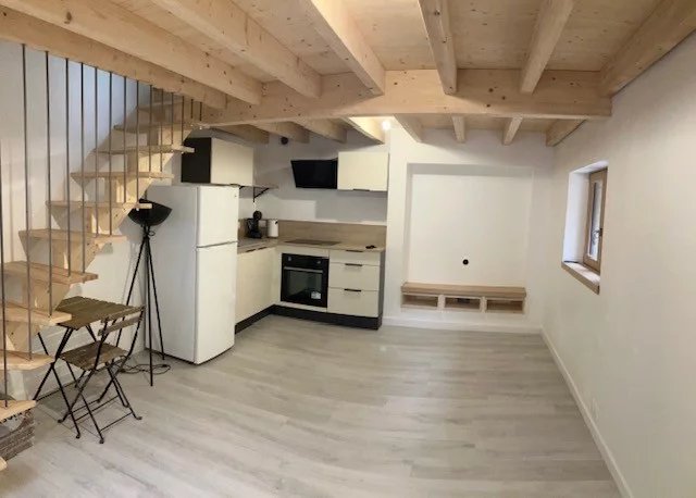 Sur la commune de Lantenay disponible courant Mars, un appartement/maison meublé comprenant : une pièce principale avec son coin cuisine donnant sur son petit jardin, salle d'eau avec wc - A l'étag...